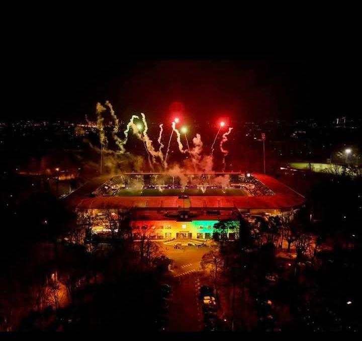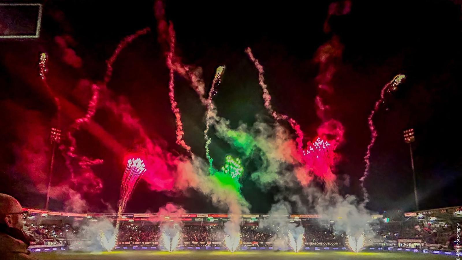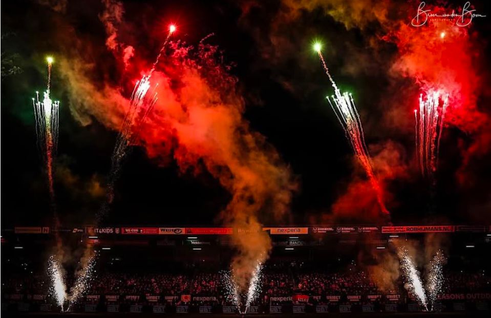 Tijdens de wedstrijd NEC-PSV gisteren zorgde de HKN, met steun van een anonieme sponsor, voor een indrukwekkende vuurwerkactie.